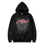 Distinctive Sp5der P*NK graphics on hoodie and pants