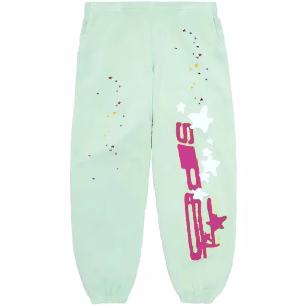 The Sp5der SP5 Mint Sweatpants Mint stand out through their refreshing colorway and iconic Sp5der branding. Pair them with neutral tops, oversized tees, or matching mint pieces to create a fresh, modern streetwear look that balances comfort and personality.