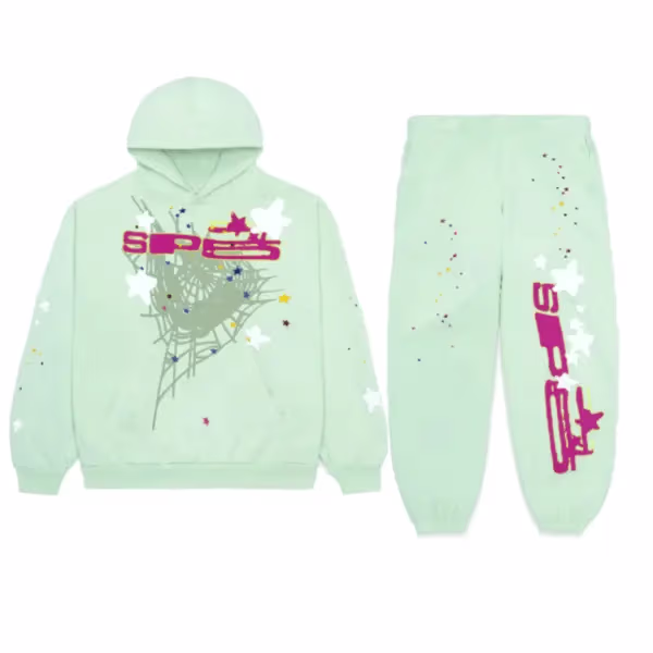 The Sp5der SP5 Tracksuit Mint is a premium streetwear essential that combines comfort, style, and bold branding. Made from soft, mid-weight fleece, this tracksuit features the Sp5der SP5 logo in a fresh mint color, perfect for casual wear, streetwear outfits, or athleisure styling.